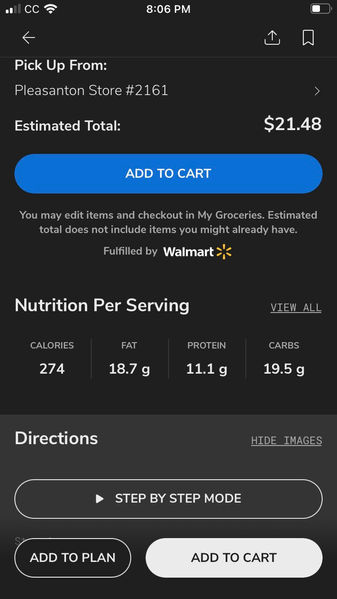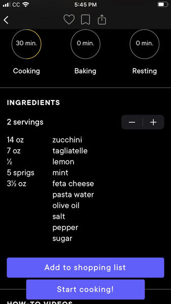 Once on the recipe page and moving through cooking steps, users do not need to scroll at all. Any actions and navigation can be done with a tap. This lessens the hand-to-phone contact during the cooking process, when users may have their hands busy.